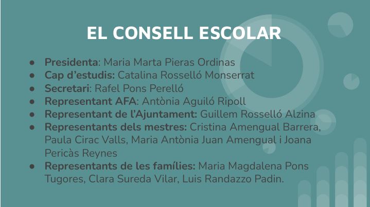 • Els i les 4 representants de pares i mares o tutors, elegits respectivament per ells i entre ells.