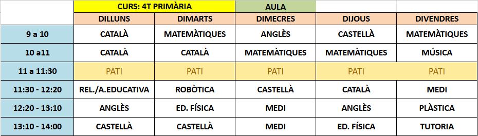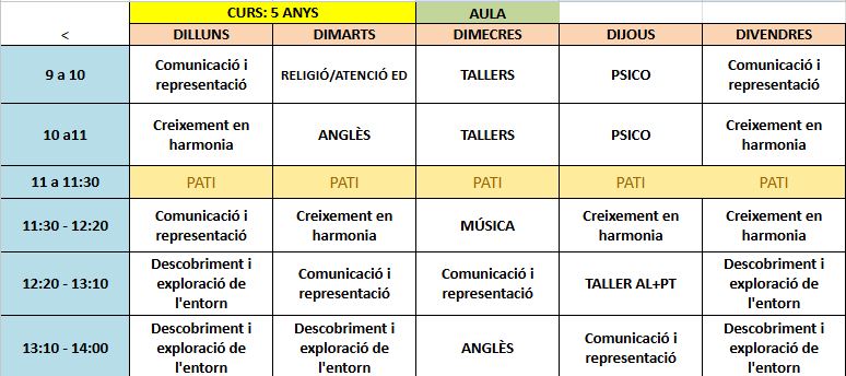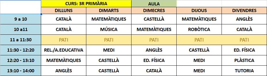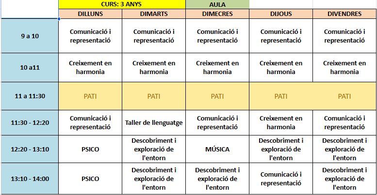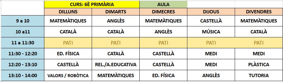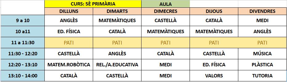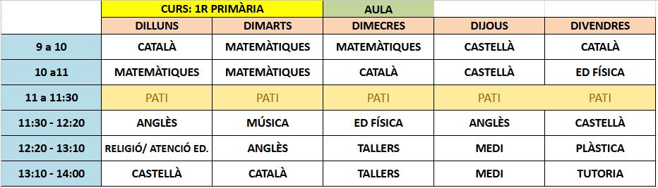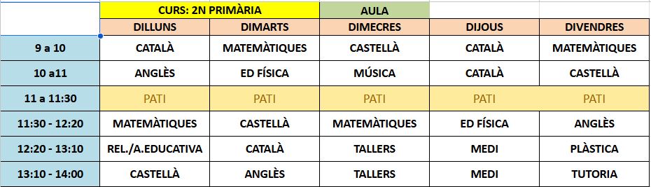 Horari escolar 2025/26 L’horari de la nostra escola és el següent: HORARIS DELS GRUPS Educació Infantil Educació Primària